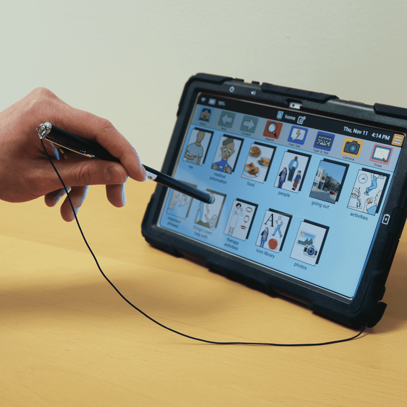 Our partner, Rehadapt, offers several AAC device mounting options addressing a variety of needs. Speak with your Lingraphica Clinician to learn more about ordering a mount for your device.
