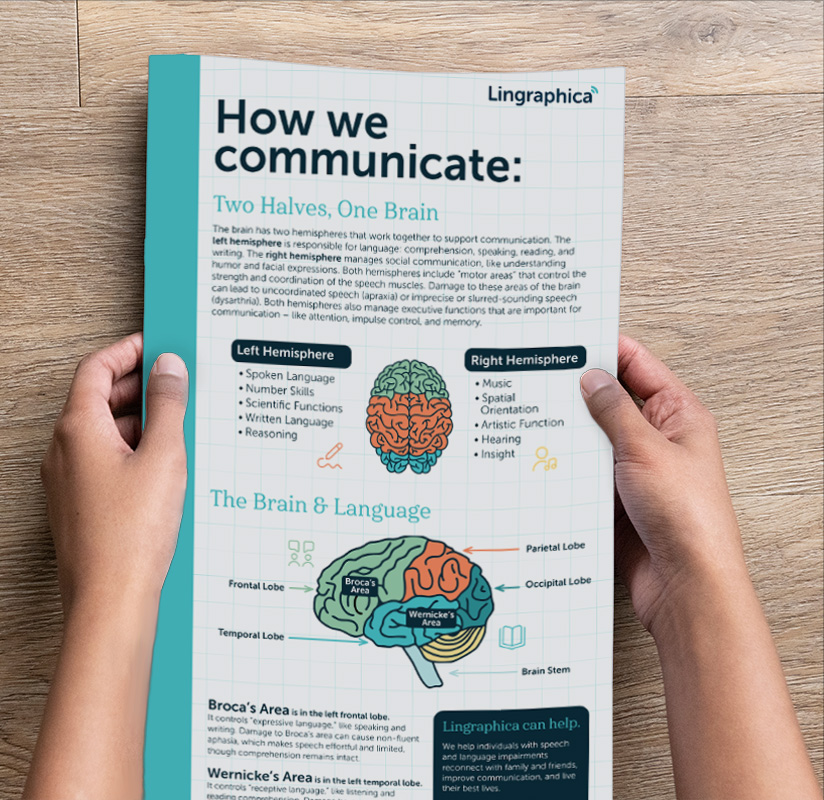 The human brain is one of the most complex and remarkable organs in the body. It controls movement, memory, emotions, and problem-solving, but perhaps one of its most intricate functions is communication. In just seconds, the brain coordinates thoughts, selects words, and sends signals to the muscles that produce speech. Download our infographic that shares how the brain has two hemispheres that work together to support communication.