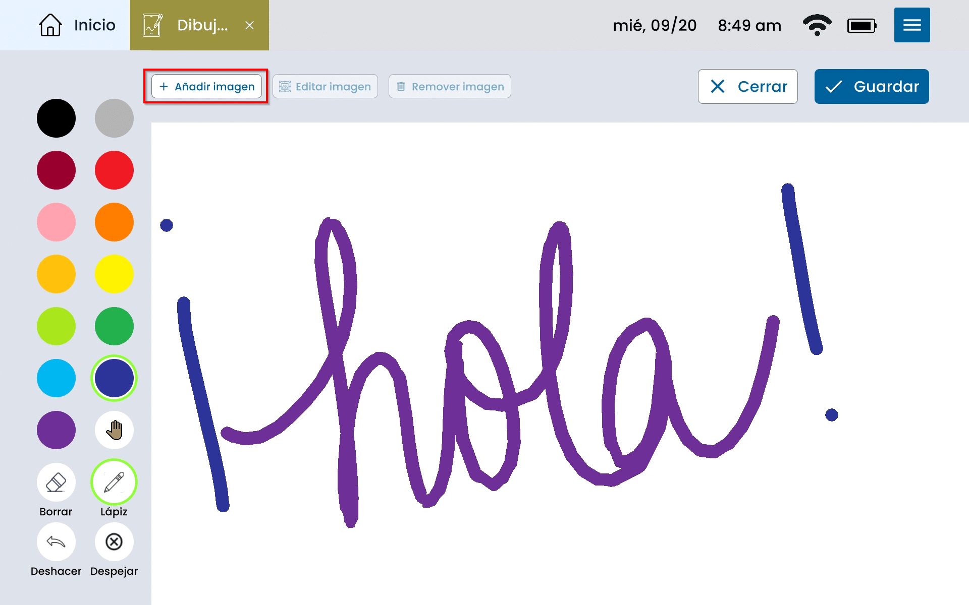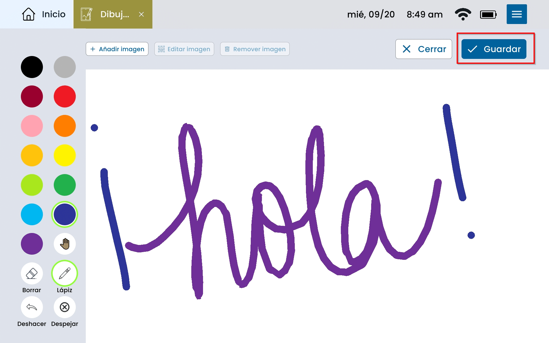Para guardar una imagen, seleccione el botón Guardar en la parte superior derecha del lienzo.