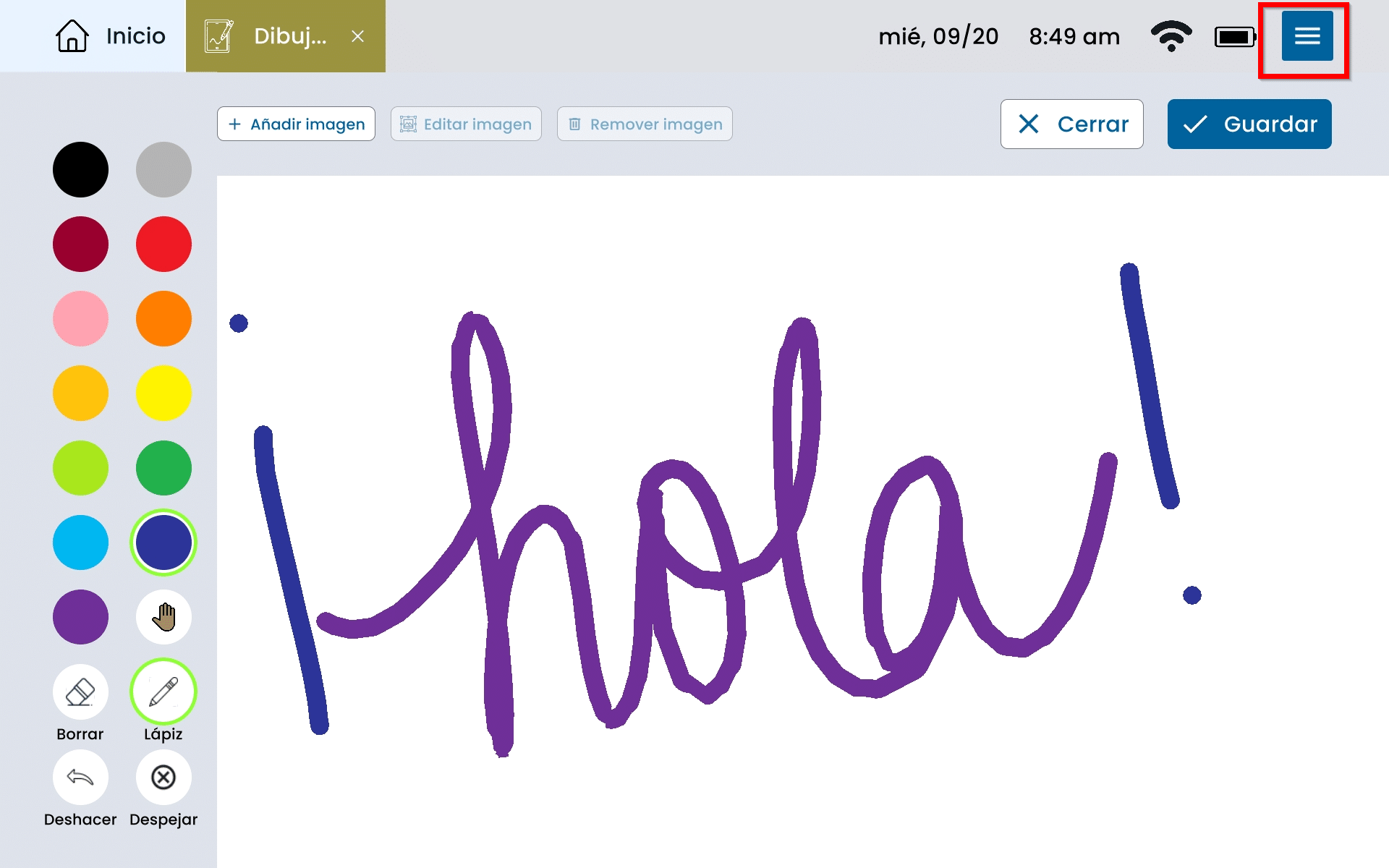 Desde Dibujar, toque el botón Menú de Ajustes que le brinda acceso directo a la Ajustes de Dibujar
