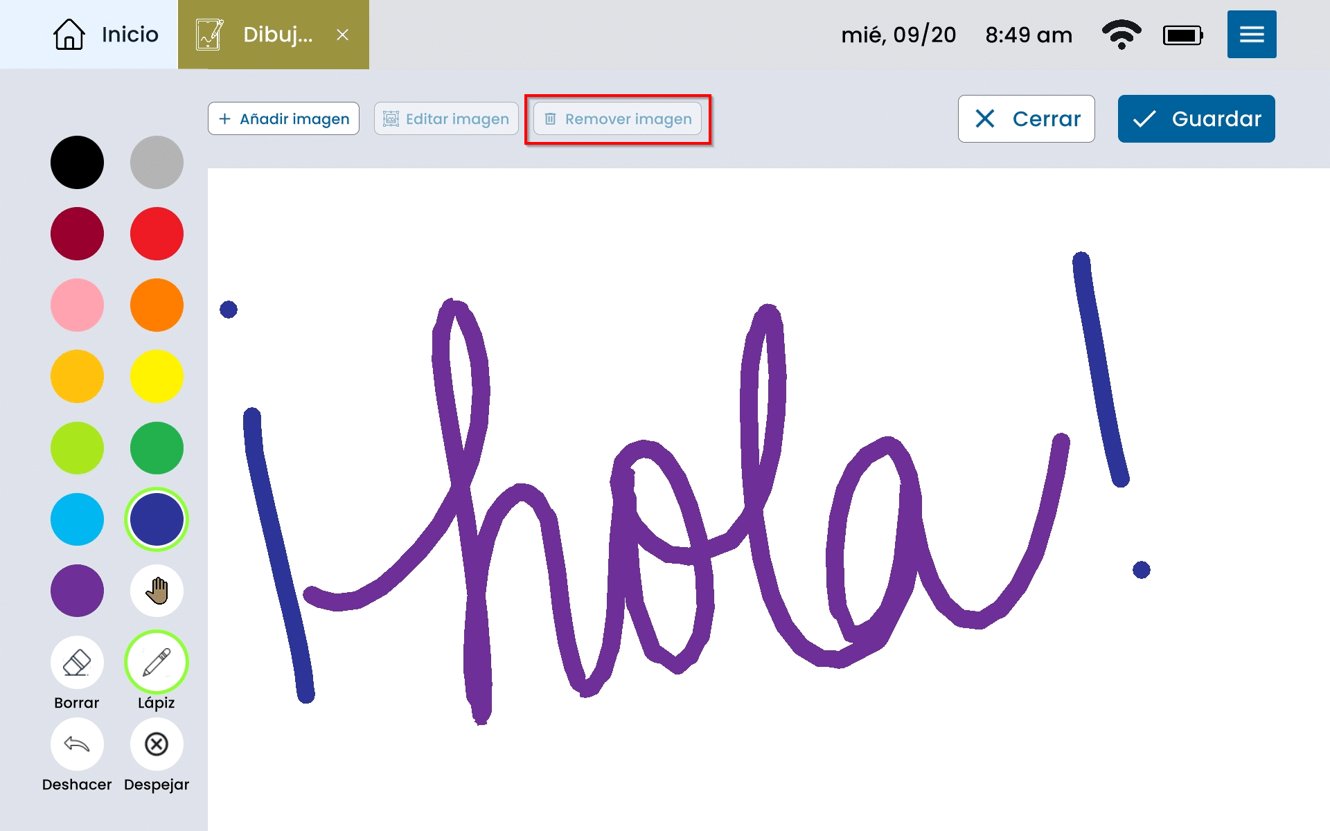 Una vez que se ha agregado una imagen, puede eliminarla seleccionando Remover imagen en la parte superior izquierda del lienzo.