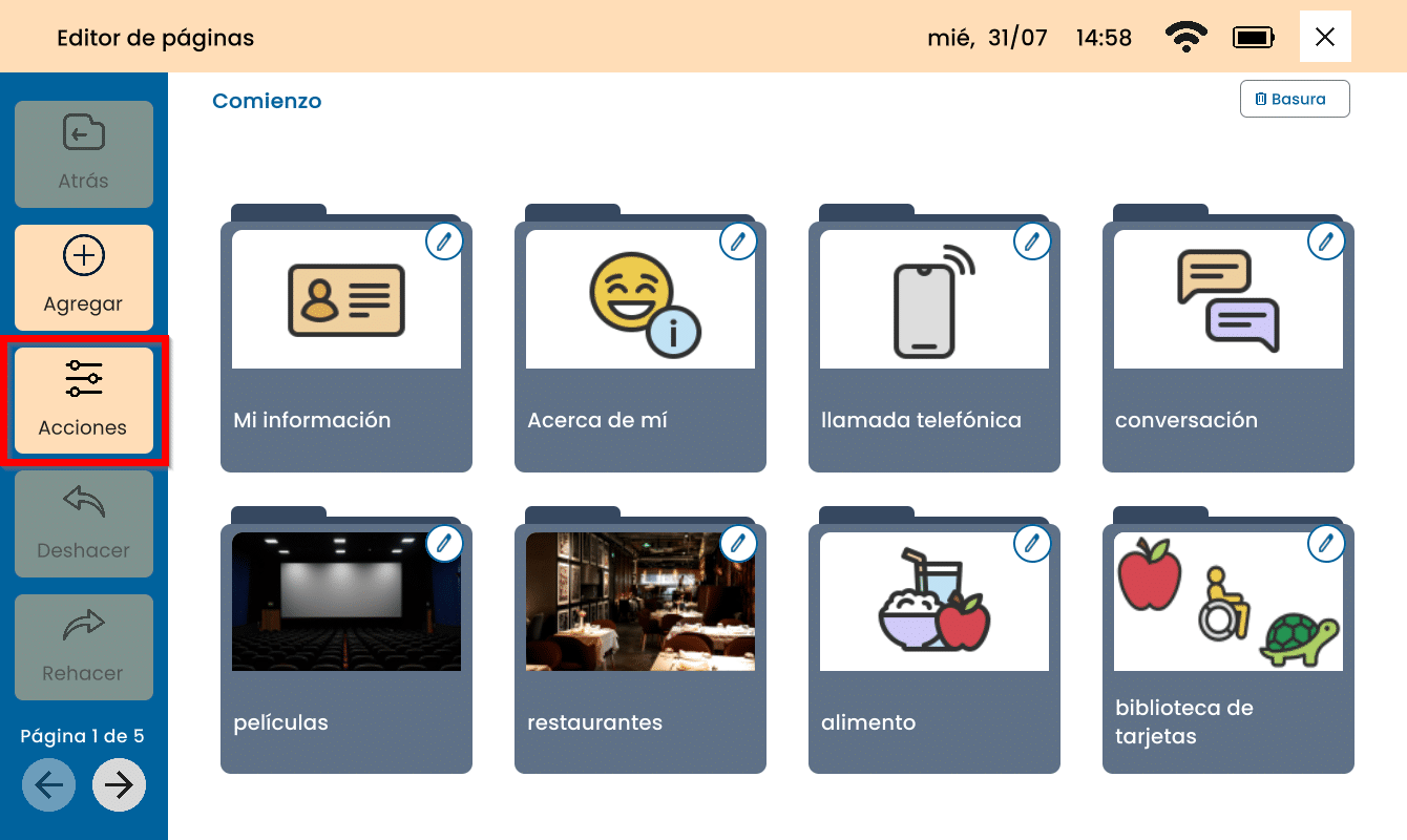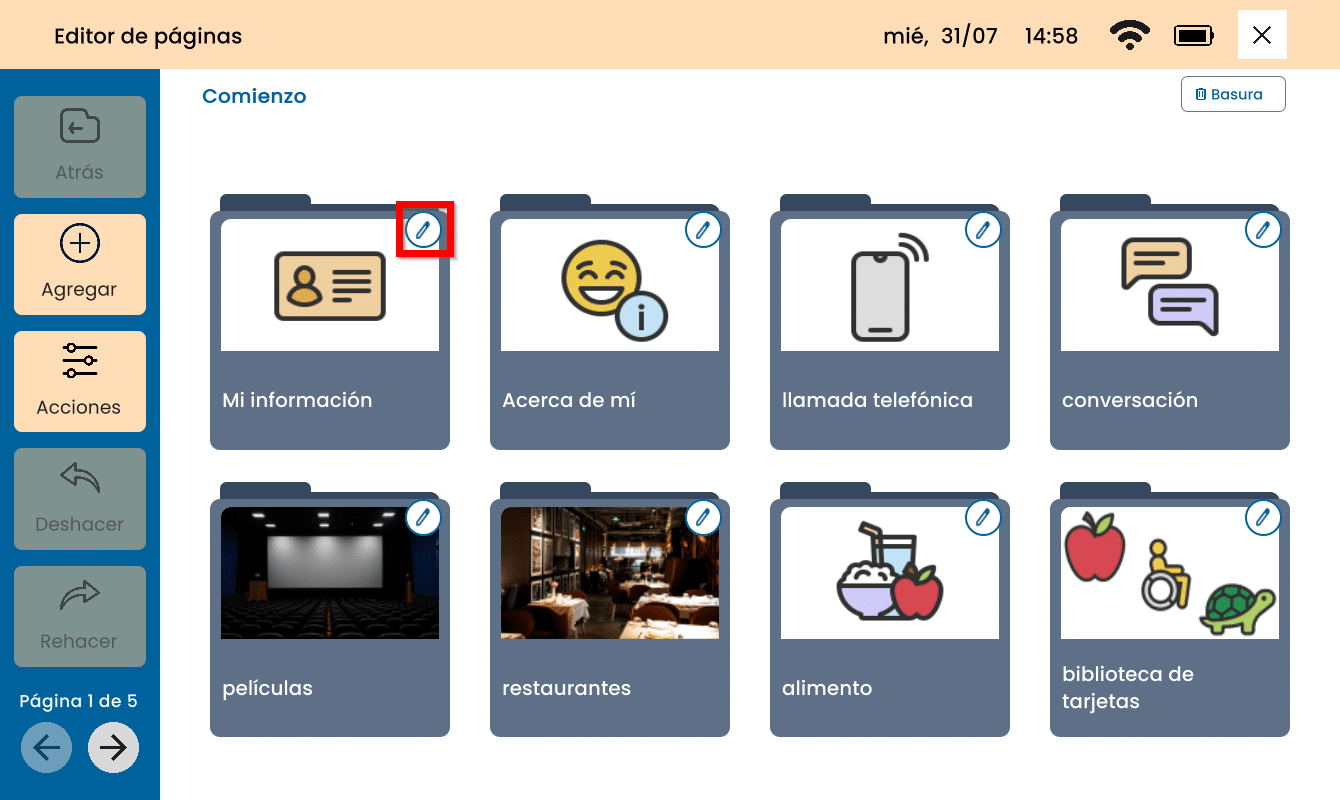 Para editar una Tarjeta or Carpeta, presione el lápiz en la parte derecha superior.