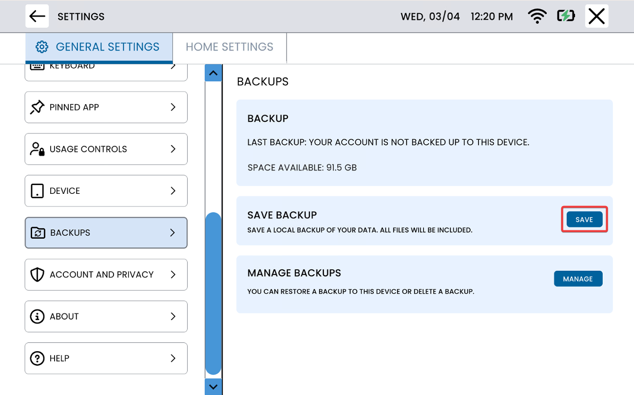 From the Save Backup section, select Save on the right side. After selecting Save, name your backup and select Save again.