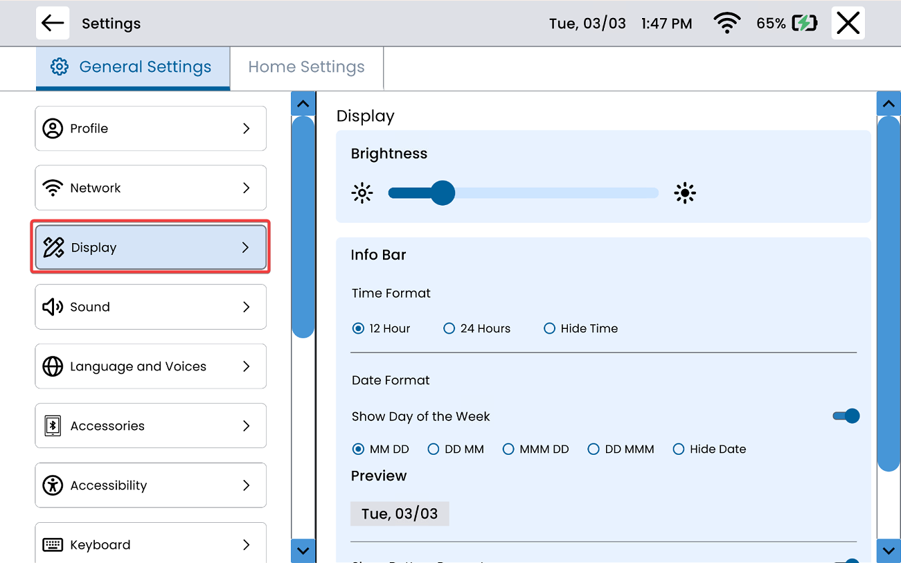 Time Format – Select if you would like the time on the info bar set in 12 hour format, 24 hour format, or if you would like to hide the time.