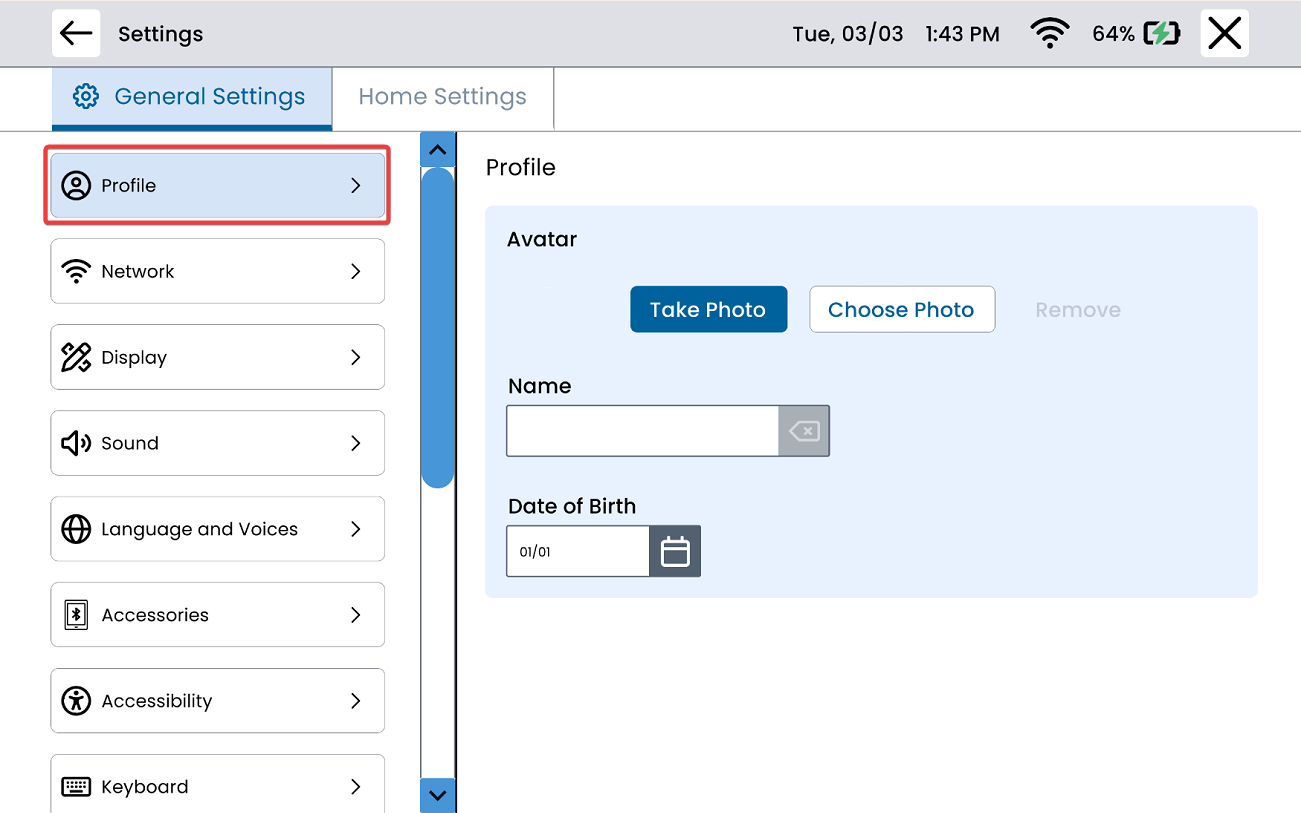 Keyboard – Allows you to find and connect a Bluetooth keyboard to the device. To connect a keyboard, select View Available Devices and select the Bluetooth Keyboard from the list.