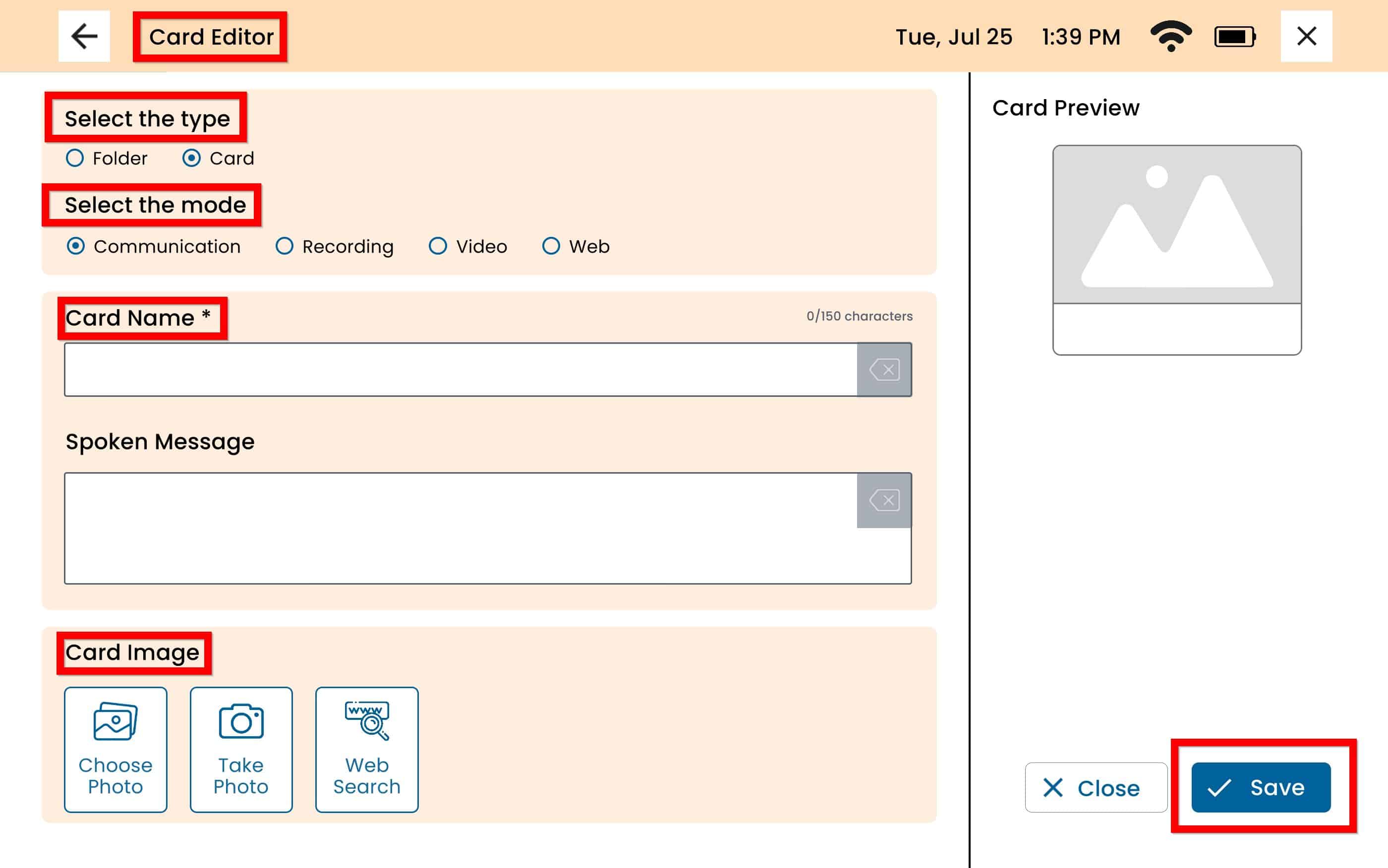 This will open the Card or Folder Editor. Make the desired edits and select Save on the bottom right.