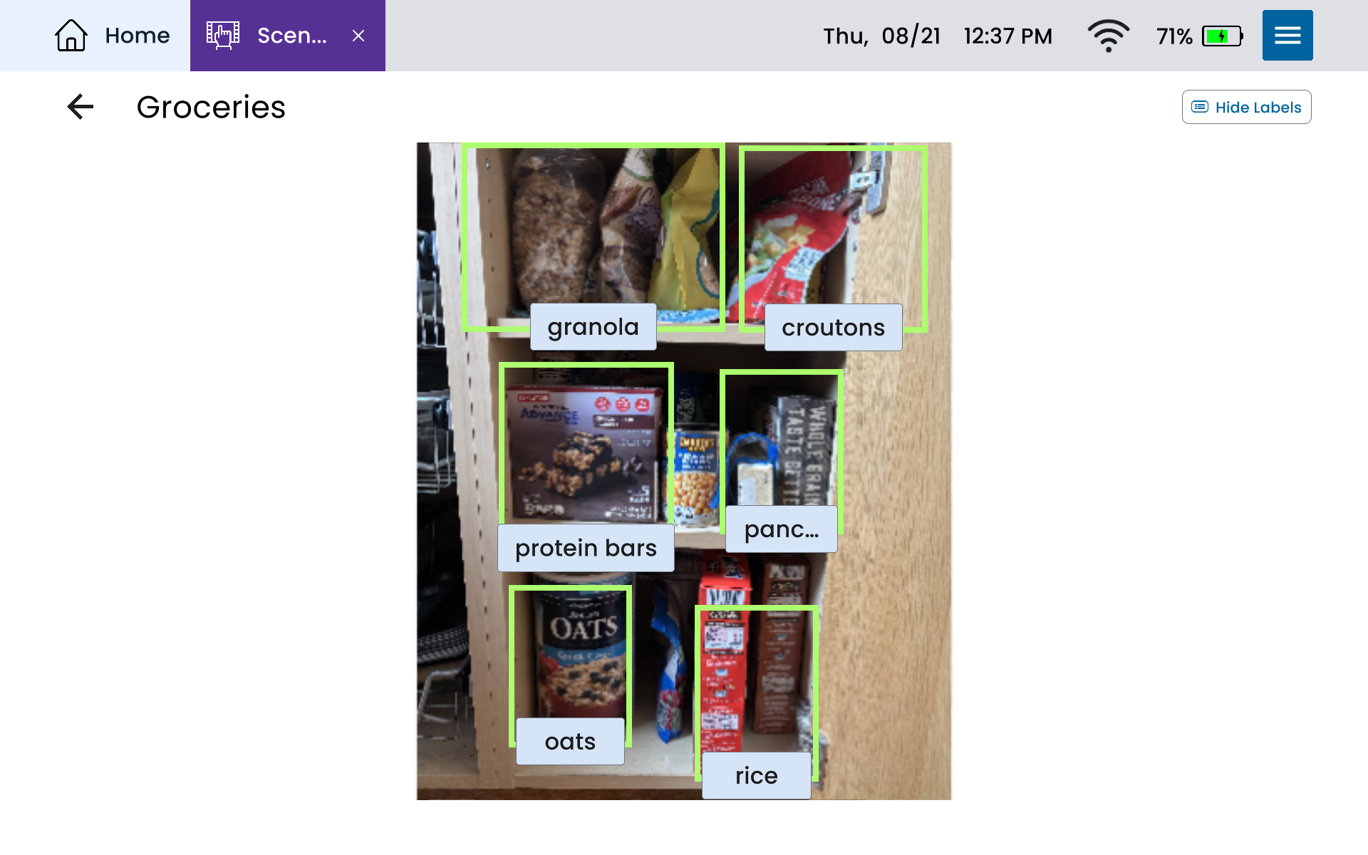One Lingraphica user with aphasia takes photos of her pantry and saves them as a Scene. With each item labeled, it doubles as a visual grocery list.