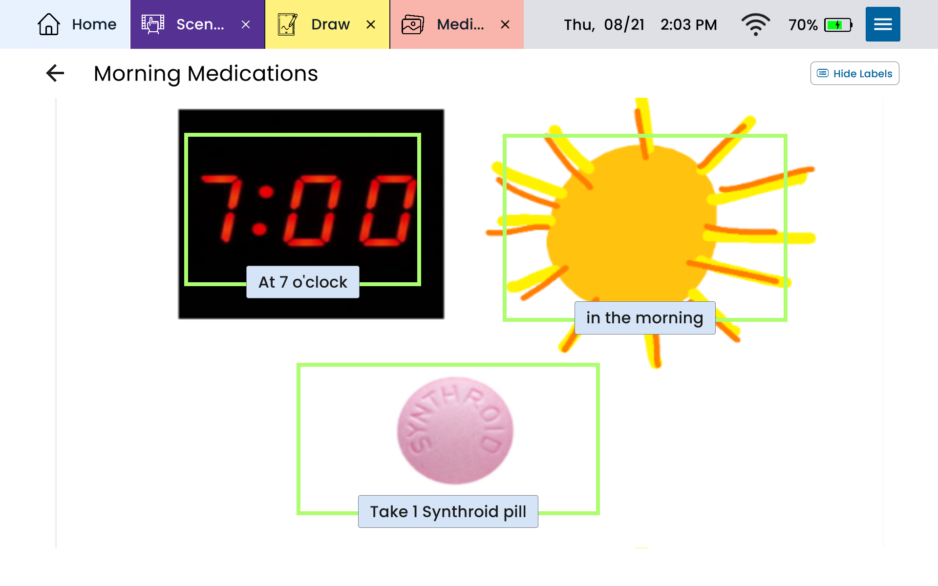 You can even create a Scene to serve as a daily schedule. Use the Draw app to make one that shows you exactly which medication to take at which time.