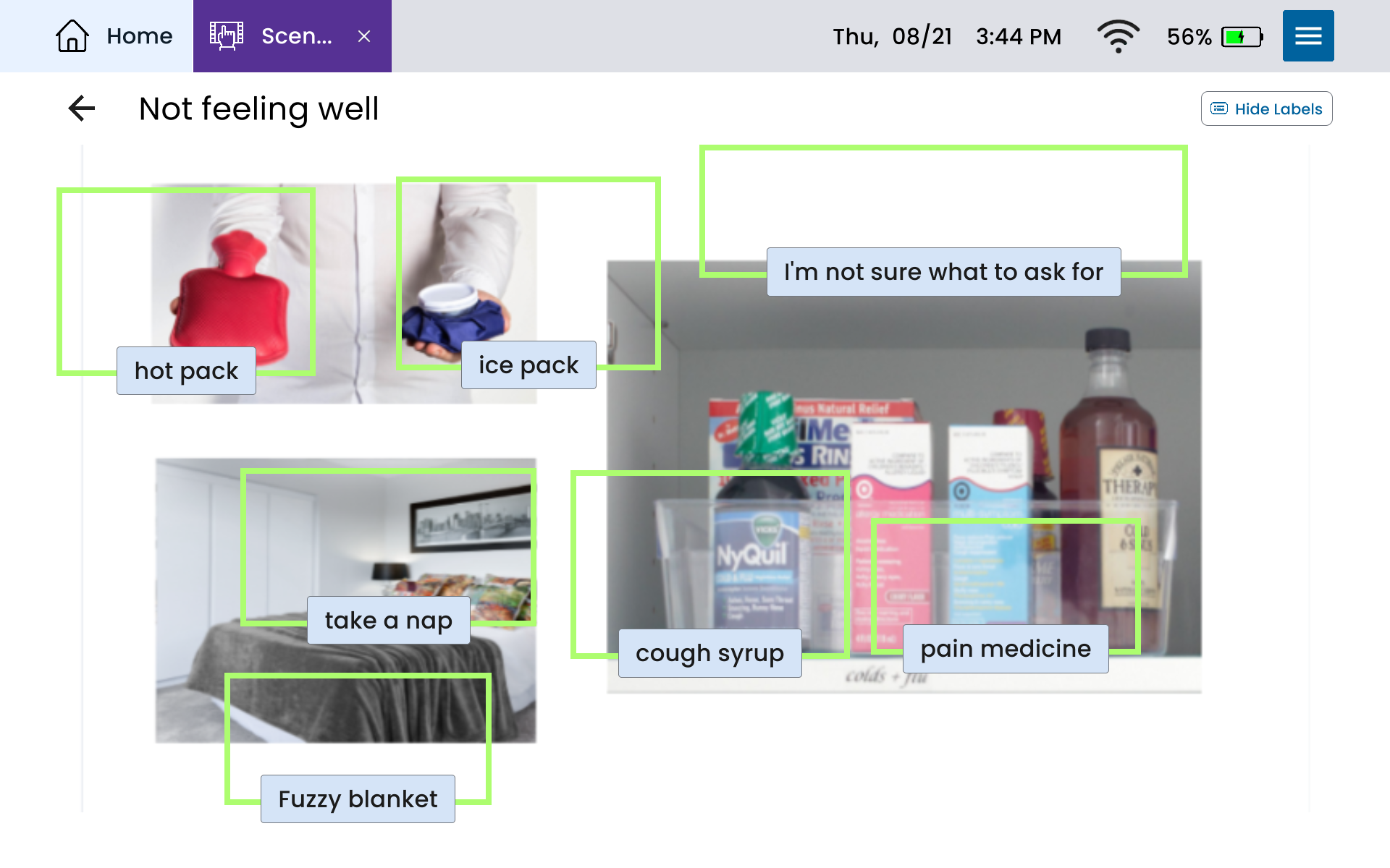 You can also create a Scene to share what you need when you aren’t feeling well. With just a tap, you can quickly say, “I need my pain meds,” or “Can you grab the ice pack?” Instead of struggling to explain, the Scene helps you say what you need in the moment.