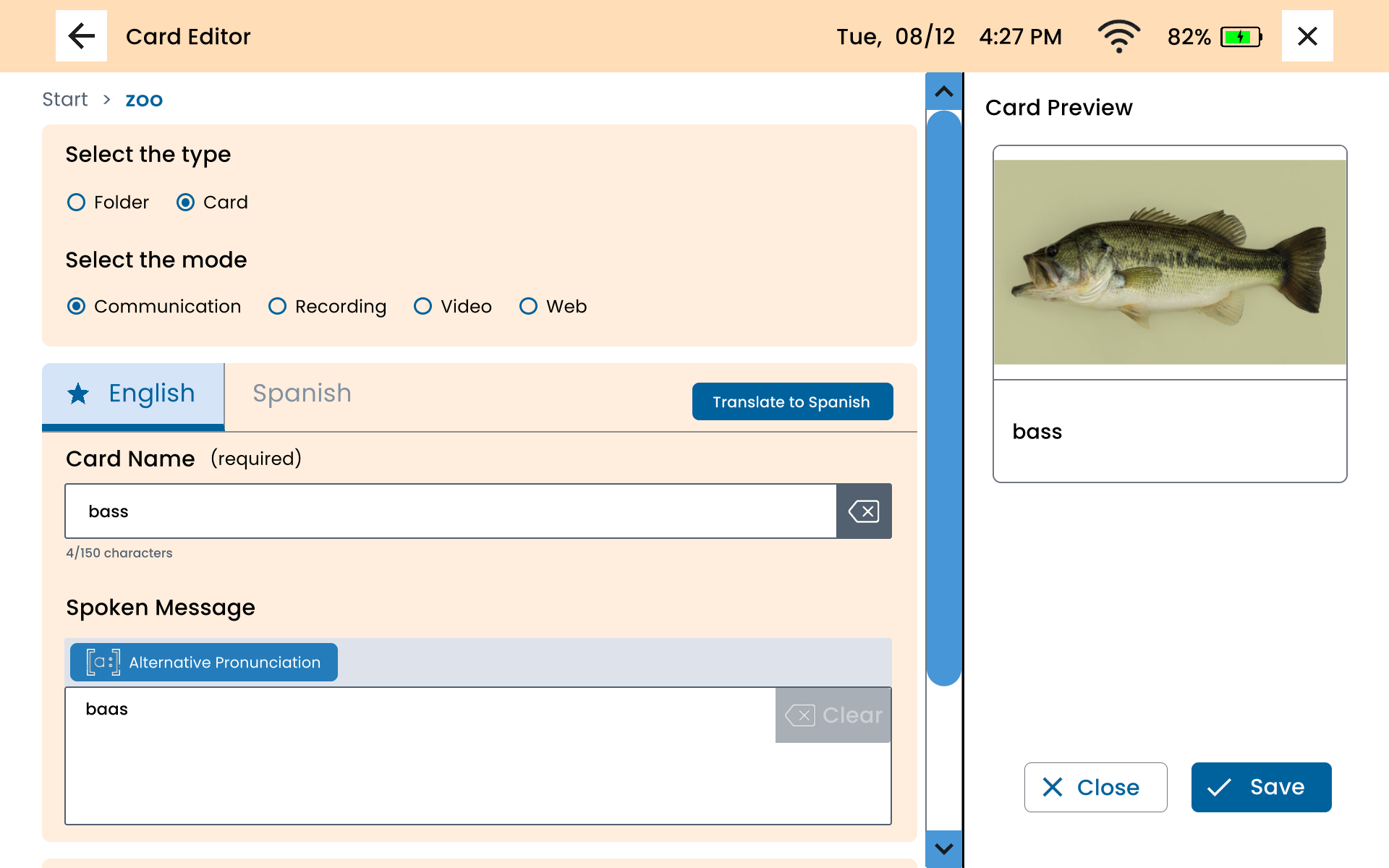If a word doesn’t sound quite right, you can now fix it. Add a phonetic spelling to any word in a Card’s spoken message using the new Alternative Pronunciation option in the Card Editor.