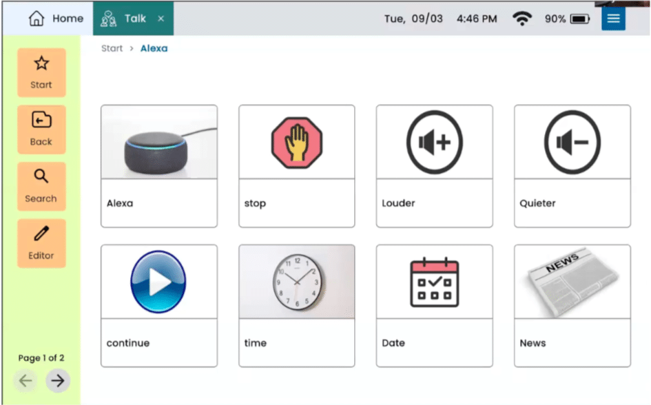 Alexa’s technology requires voice commands to work, and Mary’s TouchTalk is set up to manage them perfectly:
