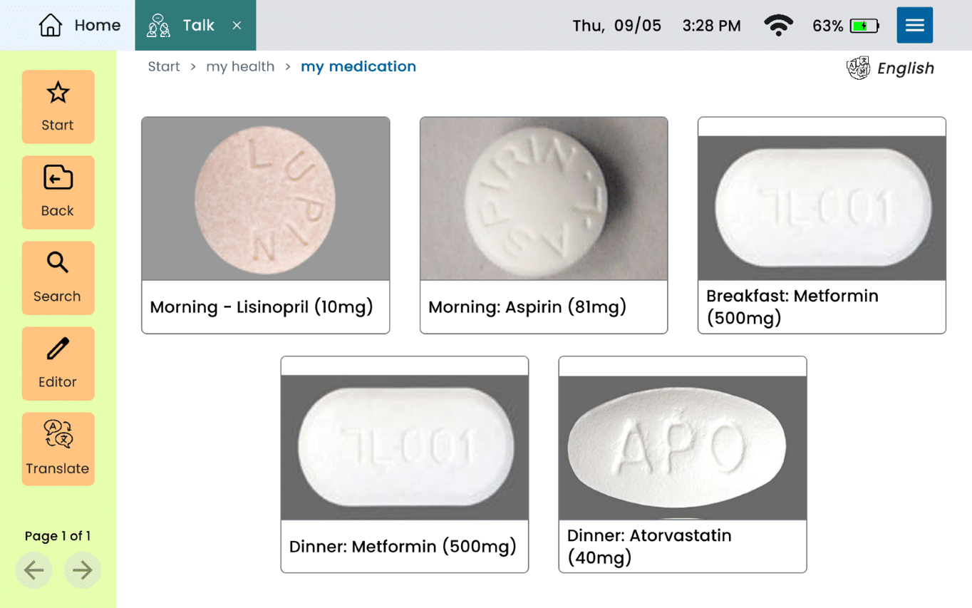 Being able to take photos of her medications and add them to her AAC device gives Mary and her family peace of mind. She can discuss her medications with her doctors and always knows which pills to take.