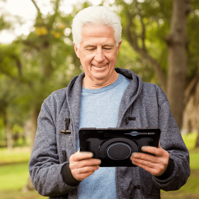 Lingraphica’s Talk app includes folders like “My Military Service” and “My VA,” along with a built-in shortcut to VA Video Connect. The device layout can also be customized to reflect your military background and needs.